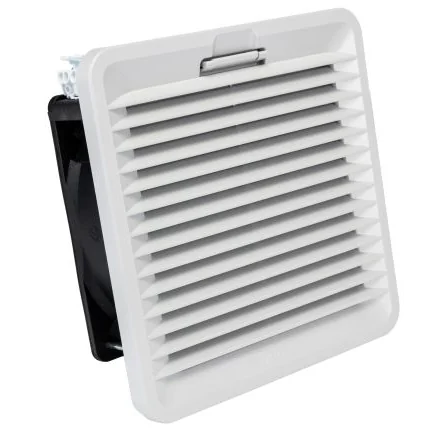Filter Fan for electrical cabinets and enclosures 120 V or 230 V AC versions.Very low acoustic noise Minimal depth within enclosure Air volume (14…470) m³/h (with Exhaust Filter installed in cabinet) Air volume (24..630) m³/h (free flow) Operating voltage: 24 VDC, 120 V AC, 230 V AC Air conditioners Automatic car-washes Carousel warehouses Control panels