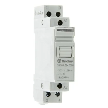 Finder DIN Rail Latching Modular Step Relay, 24V dc Coil, 16A Switching Current, DPST - 20.28.9.024.0000
