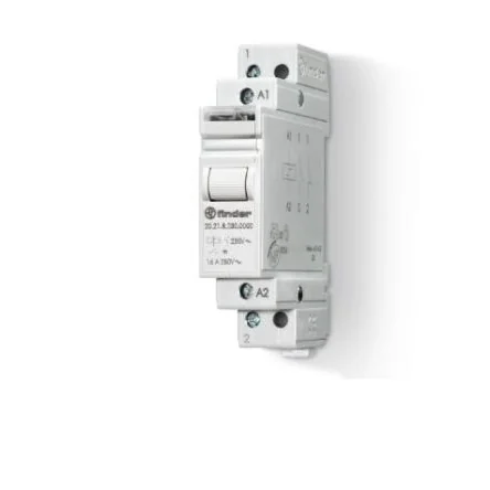The Finder Type 20.21 Modular step relays, 16A, single phase switch 1 NO, 35 mm rail (EN 60715) mounting.Width: one module 17.4 mm Test button and mechanical indicator 7 sequences AC or DC coil Identification label Connection with illuminated pushbuttons via the Finder Type 026.00 adaptor Cadmium-free contacts
