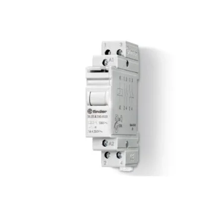 The Finder Type 20.22 Modular step relays, 16A, double phase switch, 35 mm rail (EN 60715) mounting.Width: one module 17.4 mm Test button and mechanical indicator 7 sequences AC or DC coil Identification label Connection with illuminated pushbuttons via the Finder Type 026.00 adaptor. Cadmium-free contacts
