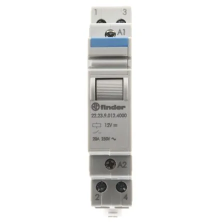 Finder DIN Rail Power Relay, 12V dc Coil, 20A Switching Current, SPST-NC, SPST-NO - 22.23.9.012.4000