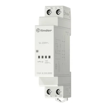13.81 Series - Electronic Step Relays. Finder 13.81 series electronic step relays, rail mounted with 1 pole. Use with 3 or 4 wire connection, with automatic recognition by the relay Control input can be continuously applied Longer mechanical and electrical life, and quieter than electromechanical step relays Zero-crossing load switching 35 mm rail mount Cadmium free contact material Screw terminal