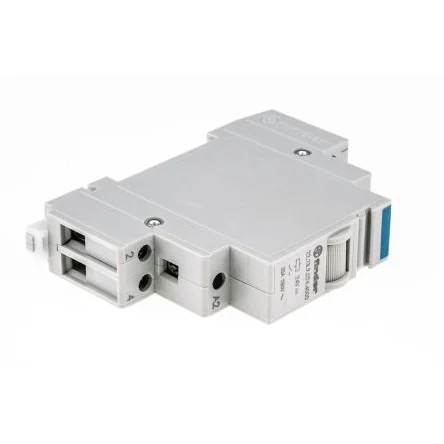 Finder Monostable Din RelayThe Finder 22 series DIN rail mount non-latching relay has contact configuration of SPST-NC, SPST-NO. It is actuated with a 24VDC coil and 20A switching current. This relay is equipped with 20A, 250VAC Cadmium-free contacts rated at 5000VAC1. The relay has a nominal lamp load rating of 1000W for incandescent and 360W for compensated fluorescent.Features and Benefits17.4 mm wide 35 mm rail mount Coil power is 1.25W Coil resistance is 460ohm Identification label Insulation between coil and contacts(1.2/50µ) is 4KV Manual test button Mechanical life 500 x103 cycles Operating temperature ranging between -40°C and 40°C Screw terminal typeApplicationsAir conditioning Heating LightingCertificationsCE certified GOST IP20 rated EN 60715