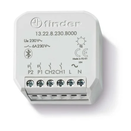 YESLY 2 CHANNEL WIRELESS SWITCH ACTUATORMultifunction relay, round wall box (ie: 0 60 mm) mounting• 2 independent and programmable channels • 21 available functions • Default function (both channels): RI – Step relay (pushbutton control) • Special function RIa - Step relay (switch control). Ideal for converting a traditional system using one, two, or four way switches, into a Smart system • 2 outputs with NO contacts rated 6 A 230 V AC • Lamp load: 200 W 230 VAC • 2 inputs for wired pushbuttons (one input per channel). Can be managed through standard wired pushbuttons, wireless pushbuttons, or Smartphone • Management of up to 8 scenarios • App programming with iOS or Android Smartphone • Supply voltage 230 V AC (50/60 Hz) • Secure Bluetooth 4.2 Low Energy connection with 128-bit encryption • Round wall box (ie: 0 60 mm) mounting