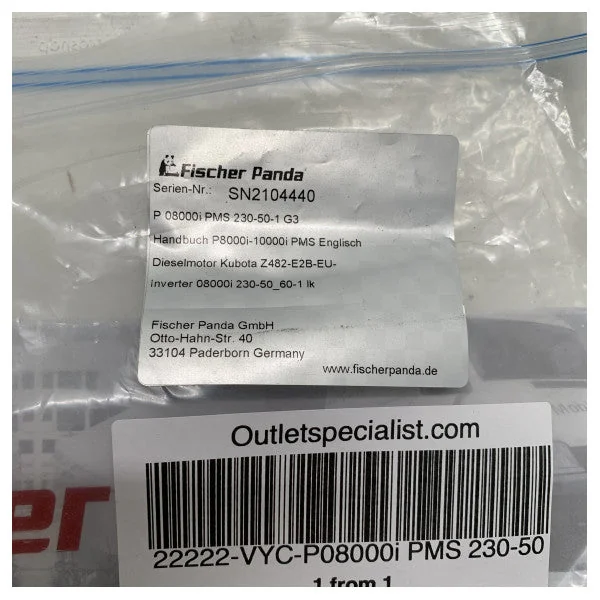 Fischer Panda - P08000i PMS 230-50 Hard Cover Manual