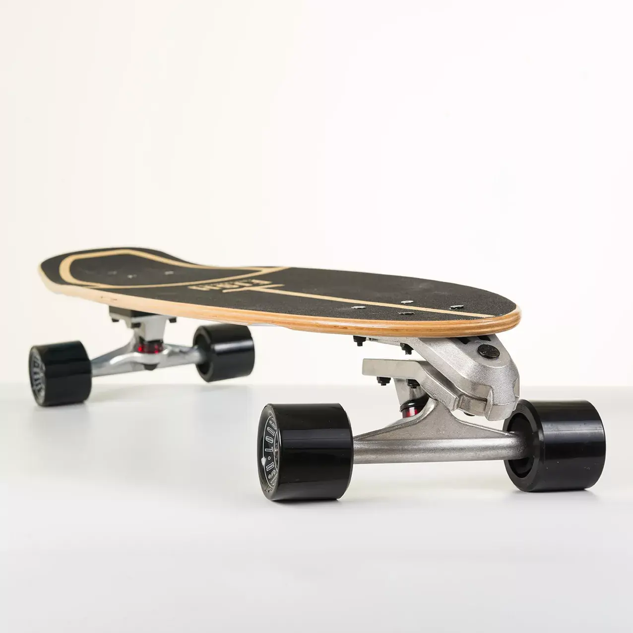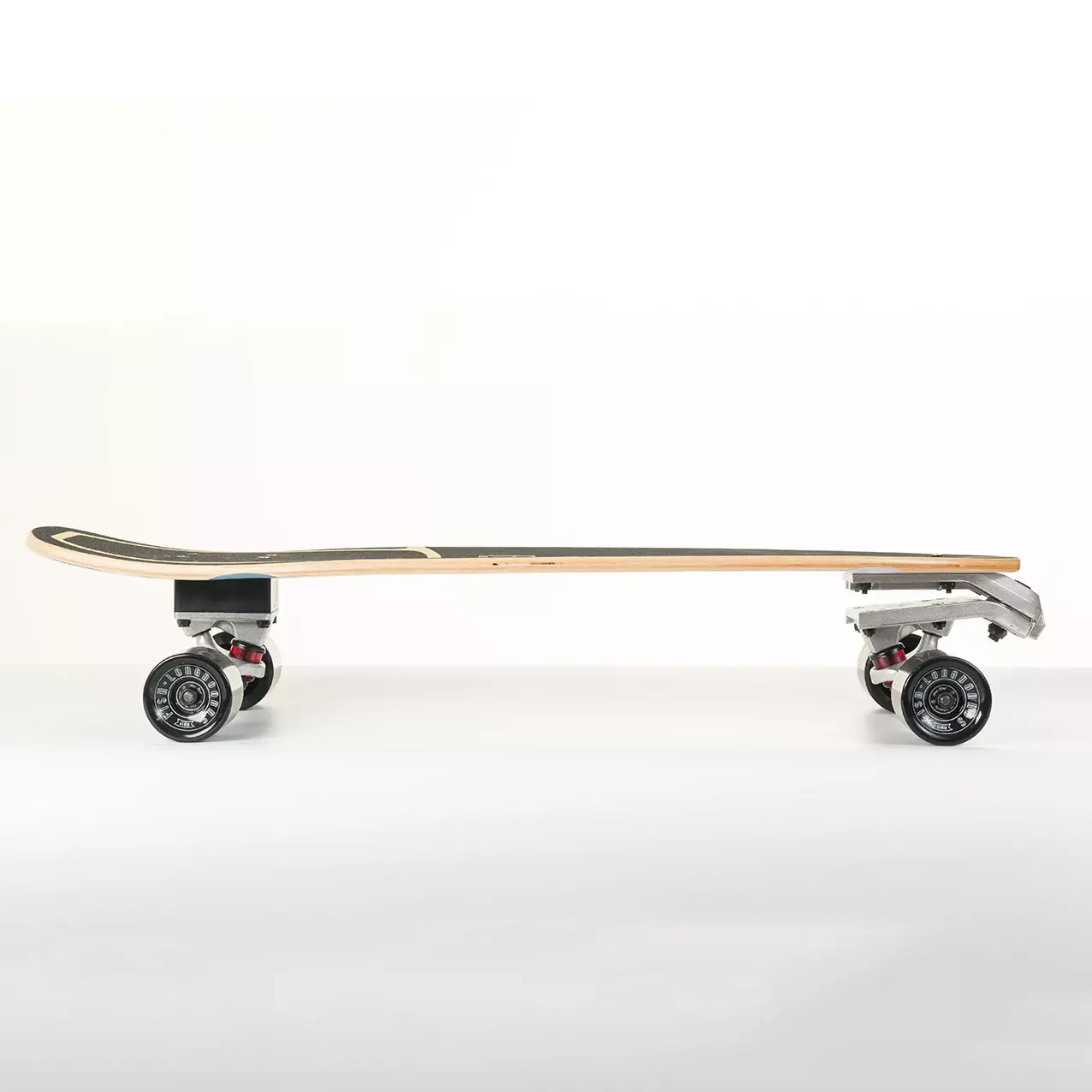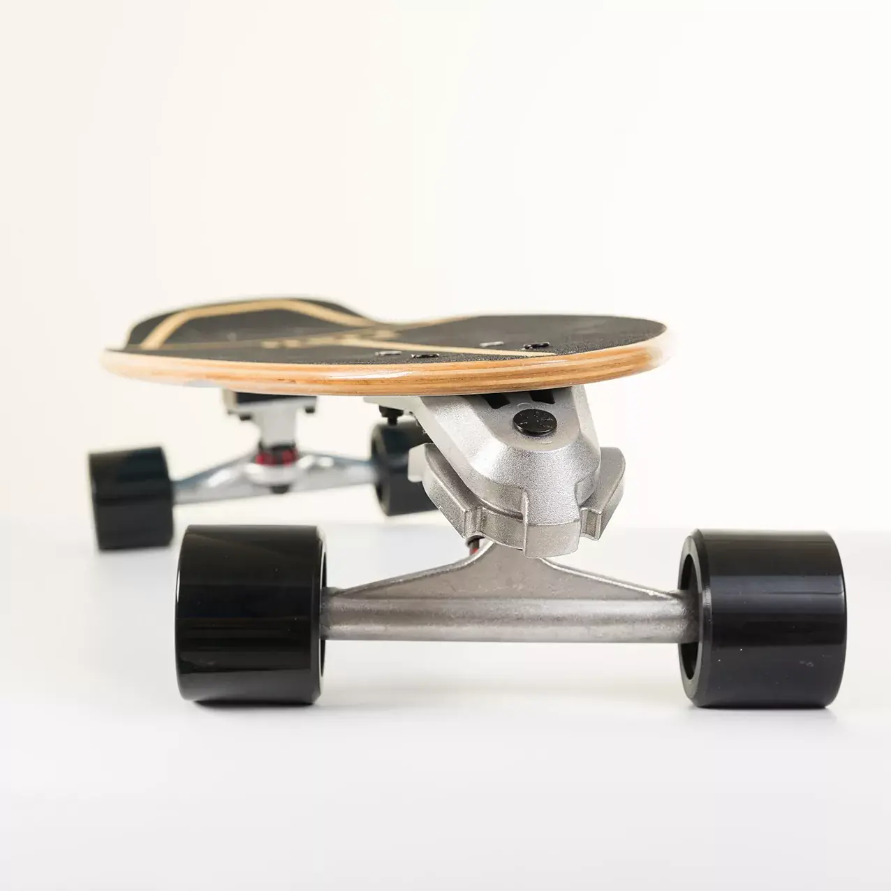 The front Truck can move right - left and while using this characteristics you can simulates the waves and practice surfing on land.