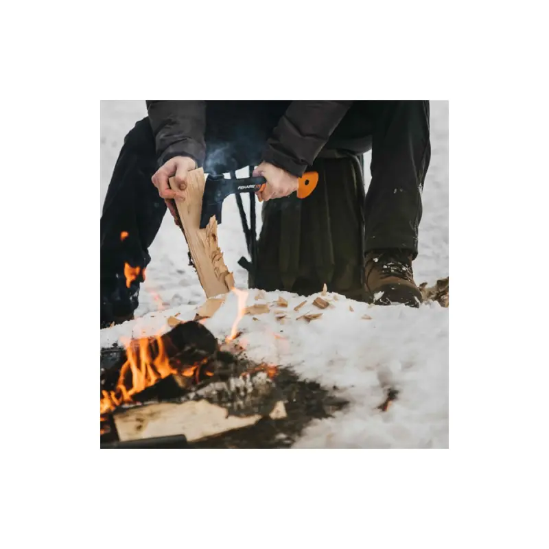 Are you on a forest excursion and looking to warm up? With the FISKARS universal hatchet - XS, you can chop wood to keep warm. It features a thin and wide blade that allows you to make clean and easy cuts, especially on green and resinous wood such as spruce or pine. Additionally, thanks to its ultra-lightweight and nearly unbreakable fibreglass handle, your tool will last a long time and reduce your fatigue. Compact and easy to carry, it has been specially designed for outdoor activities or camping.