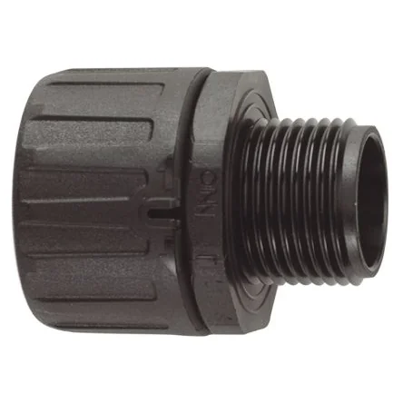 CE BS EN IEC 61386 Lloyds Register UL Listed REACh RoHS. FPA Conduit Fitting, Straight, External Thread. Conduit fitting, straight, external thread. One piece, fast fit suitable for knockouts or threaded entries. 1 Part fast-fit IP rating: IP66 Vibration and shock tested to EN61375 Cat2 Tamper resistant All round teeth give high pull-off strength Can be removed using a flat bladed screwdriver Temperature range: -50°C to +135°C Low fire hazard (LFH) Halogen, sulphur and phosphorus free Colour: black