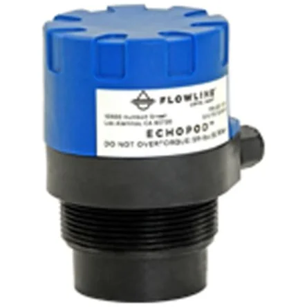 Flowline EchoPod UG01 ; UG03 Reflective Ultrasonic Multi-Function Liquid Level Transmitter. Flowline EchoPod UG01 ; UG03 general purpose reflective ultrasonic multi function level transmitter provide continuous level measurement up to 3 m. 4 mA to 20 mA analogue signal output and four relay outputs are configurable via Flowline WebCal software. The non-contact liquid level sensor features reflective technology that delivers reliable level measurement in condensing environments. Each relay can be configured for alarm, automatic fill or empty functions. Features and Benefits. Fail-safe diagnostics with selectable relay and signal outputs. Narrow 2 (5 cm) beam width for applications with limited space. Corrosion resistant PVDF transducer and compact PP enclosure. Short 1.5 (3.8 cm) dead band maximises tank filling capacity. Automatic temperature compensation from -40º to 80º C. Four programmable relays with embedded level control logic