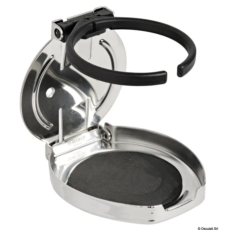 Durable foldable holders for glasses and cans, ideal for bulkhead mounting.