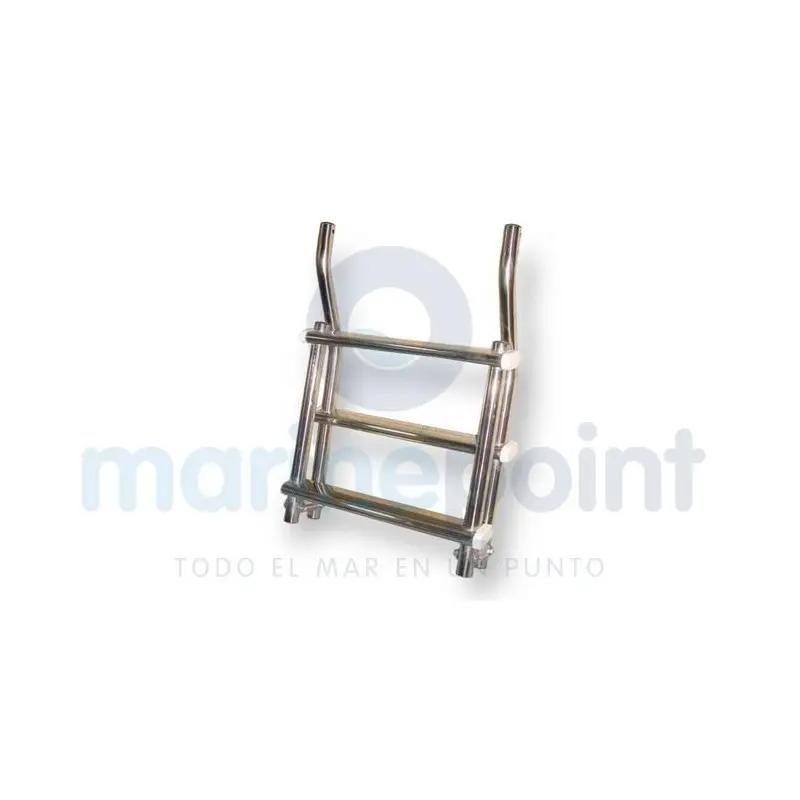This foldable stainless steel ladder features 3 steps for convenient access.