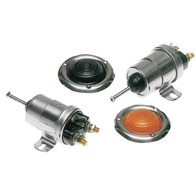 Versatile 12V remote control switch with foot pedal and manual operation for marine applications.