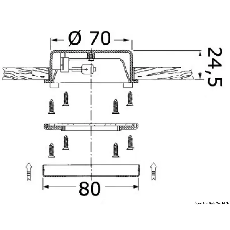 Stylish halogen ceiling light designed for recess mounting by Osculati.