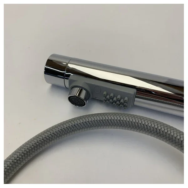 - Pull-out hose: Includes a pull-out shower head (extractable shower) for extra flexibility when rinsing and cleaning, with a flexible hose of approximately 1 metre (retractable 1m flexible).