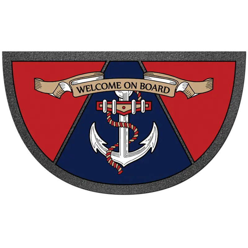 Durable antiskid rug designed for marine environments, featuring a stylish anchor theme.
