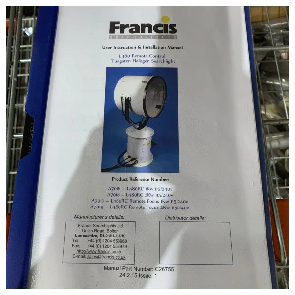 Enhance your operational safety and visibility with this top-quality Francis searchlight.