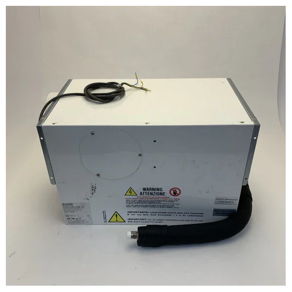 This model, the Frigomar 744, is a fan coil air conditioning unit with a cooling capacity of 10,000 BTU. The unit requires a power supply voltage of 230V and is specifically intended for maritime applications.