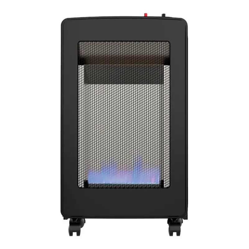Compact indoor gas stove with a blue flame and folding design for easy storage.
