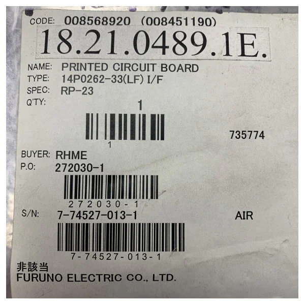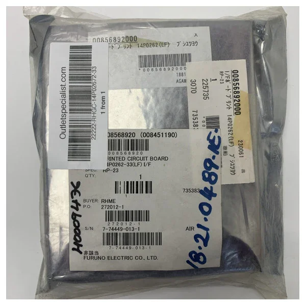 The Furuno 14P0262-33(LF) L/F circuit board is a high-quality electronic component designed for maritime equipment. This circuit board is suitable for various navigation and communication instruments on board ships. Manufactured in Japan by Furuno Electric Co Ltd, the product is known for its reliable performance and long lifespan. The item is delivered in original packaging and protects against static electricity and damage. Ideal for the replacement or repair of existing Furuno equipment thanks to the precise specifications and compatibility with RP-23 systems.