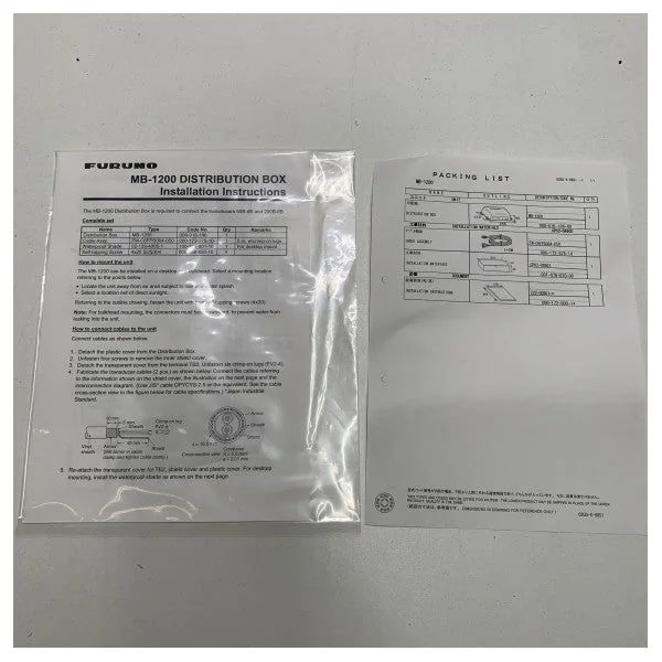 - The Furuno MB-1200 sonar distribution switchbox comes with a manual and mounting brackets.
