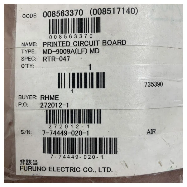 This printed circuit board (PCB) is an essential component of your Furuno FAR-28X5 radar system. Specifically designed for the MD9009A RTR-047 model, this PCB ensures optimal performance and accurate data display.