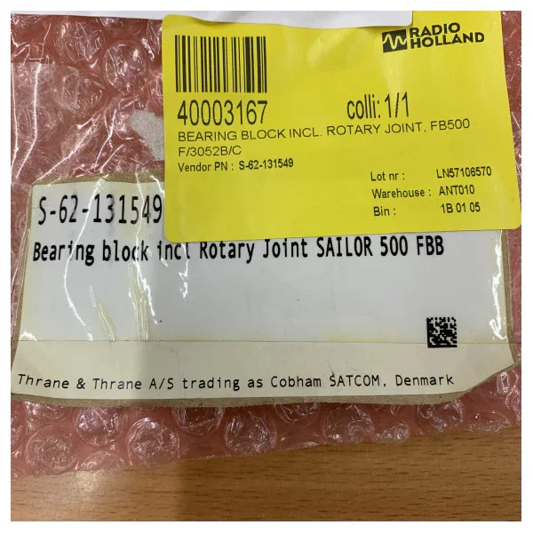This original Furuno S-62-131549 bearing block (Bearing Block) is a crucial spare part designed for the Furuno FELCOM501 communication satellite system. The bearing block plays a key role in the mechanical stability and freedom of movement of the antenna unit, which is essential for maintaining a stable satellite connection at sea. It ensures smooth and accurate operation of the antenna to optimize the performance of your marine communication.