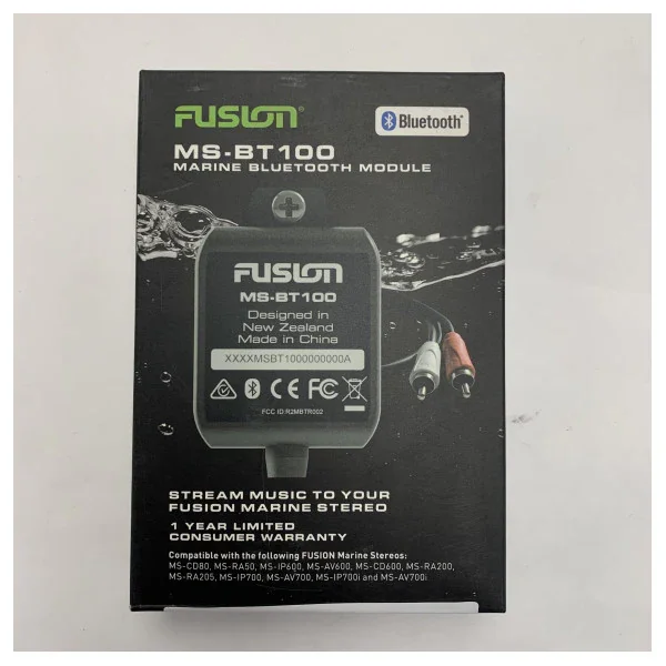 The Fusion MS-BT100 Marine Bluetooth Module is the perfect solution to add wireless music streaming to your existing marine audio system. This robust and waterproof module easily connects to any Fusion marine stereo or other brand with an AUX input. Enjoy the freedom to stream your favourite music from your smartphone, tablet, or any other Bluetooth device, wherever you are on your boat.