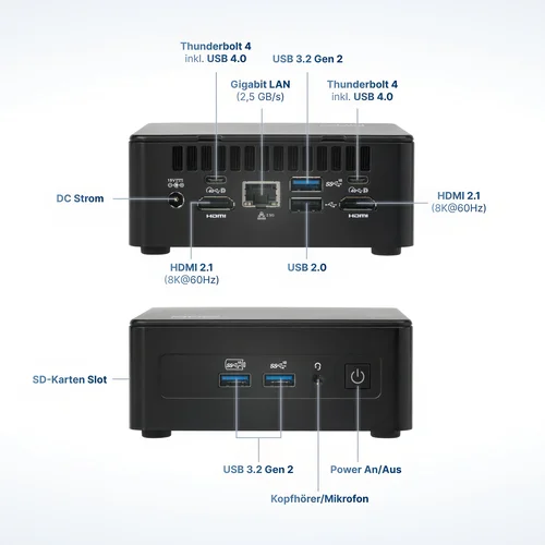 Compact and powerful mini PC with Intel Core i5, 16GB RAM, and 512GB SSD.