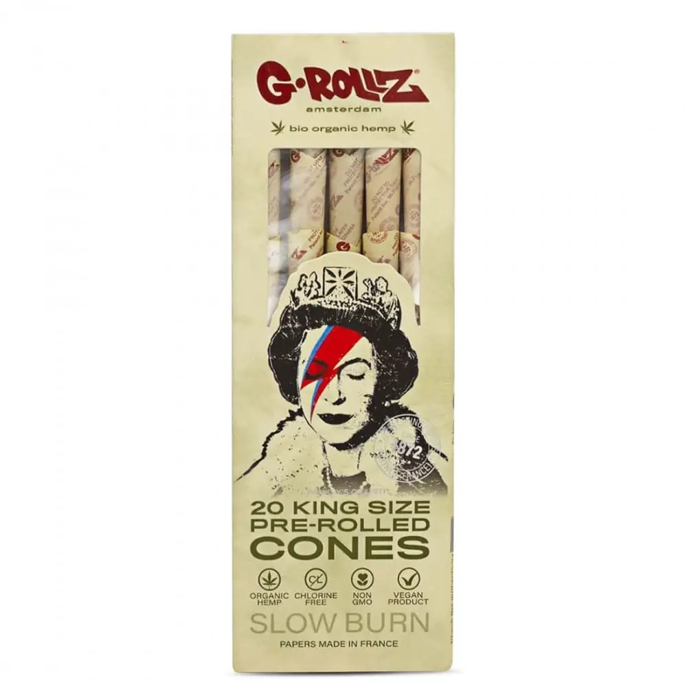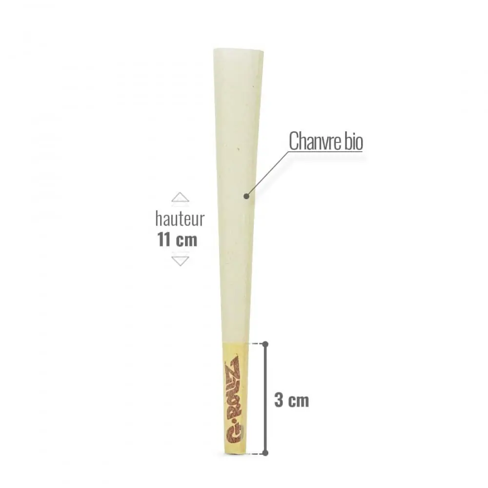 Pack of 20 g-rollz hemp cones 11 cm long, with cardboard filter in w and packer.