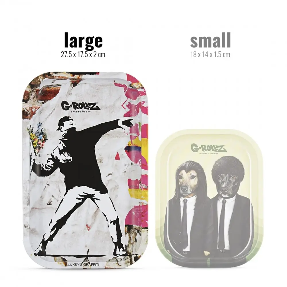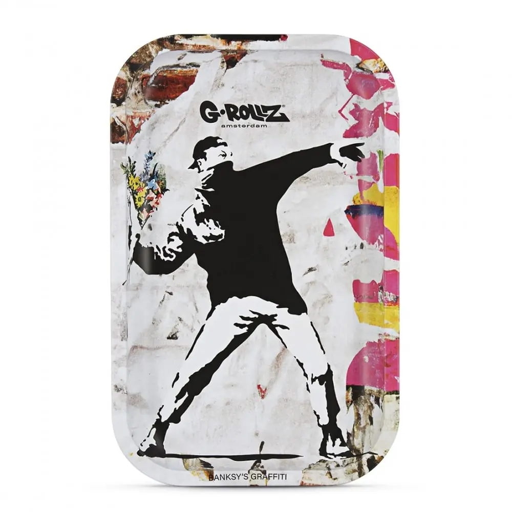 Elevate your rolling experience with the G-Rollz Banksy Graffiti Large Flower Rolling Tray, designed for style and functionality.