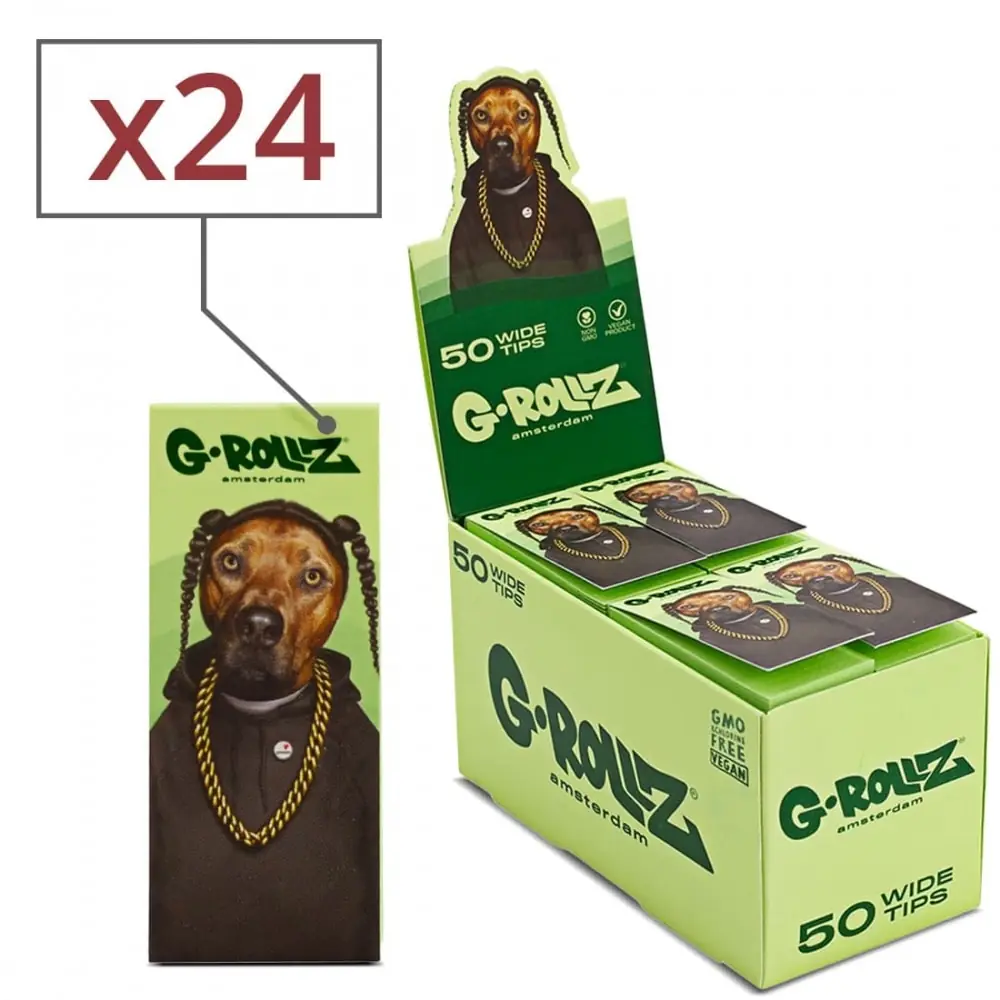 24 books of 50 g-rollz pet rocks dog perforated cardboard filters. these filters are wider than most with a width of 27mm.