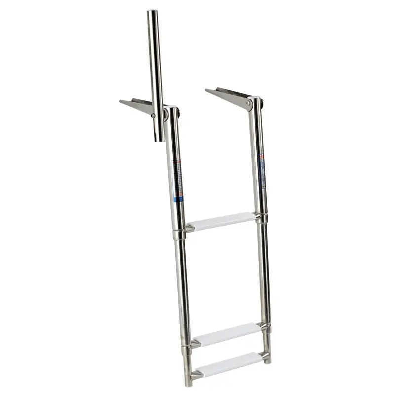 Easily board your boat with this durable 3-step stainless steel ladder featuring a foldable handle.