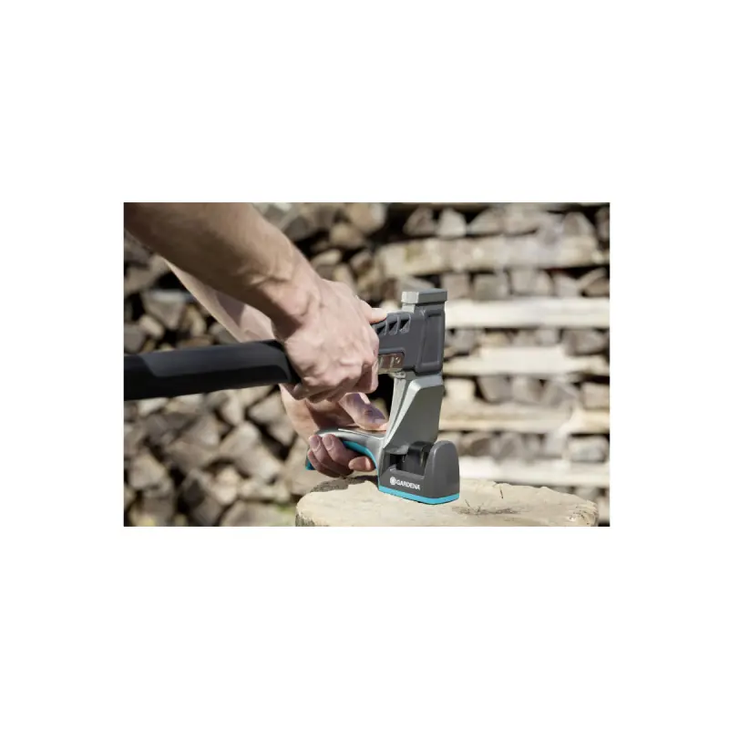 This GARDENA axe and knife sharpener - 8712-20 is a versatile device for optimally sharpening your garden axes and knives. The sanding process is particularly quick and reliable thanks to the 2 sides of the blades and the guiding slot. The ergonomic and stable handle and the non-slip base allow for easy handling and safe work during the sanding process. Diamond-coated sanding discs and inserts of various sizes ensure simple and comfortable work. With this tool, you can quickly restore the original sharpness of your blades and axes.