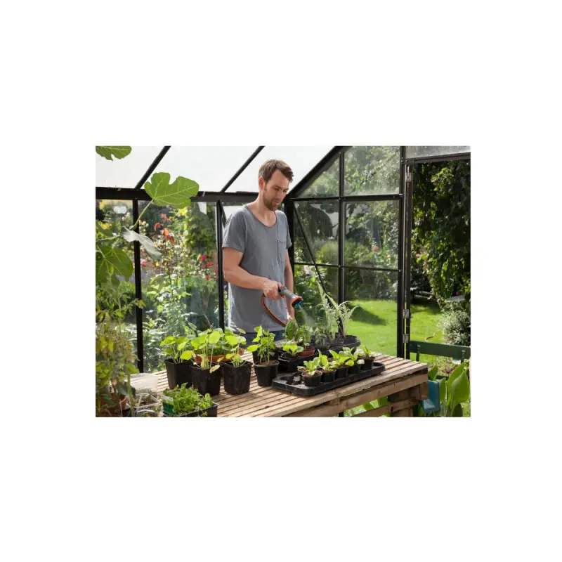 For all gardening enthusiasts, the Gardena special gardening pack will bring you joy! Specifically designed to water your sensitive plants, the spray gun fits your carefully coiled hose on the reel. The reel offers greater mobility in your garden, and the spray gun provides special watering.