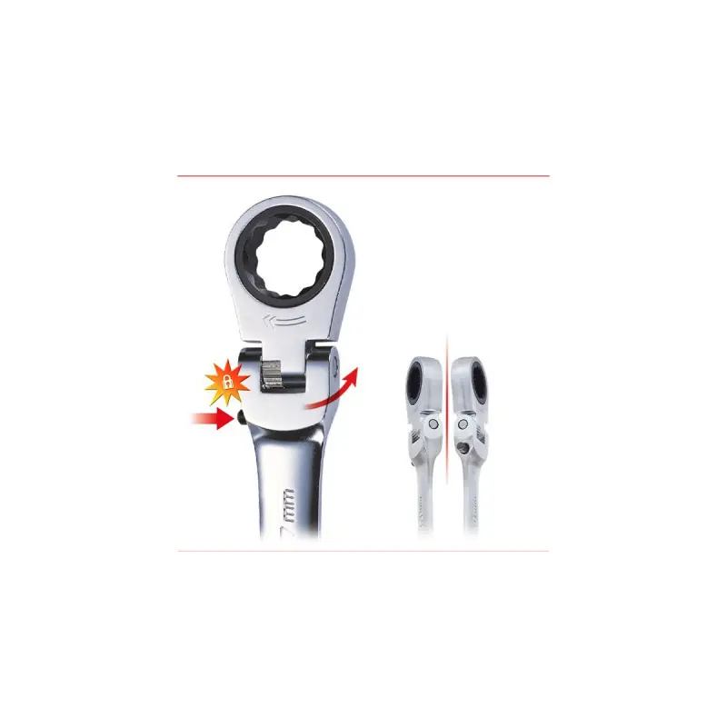 Made with high-quality materials, this combination wrench guarantees exceptional durability and wear resistance even during intensive use. The ratchet function allows for quick tightening and loosening, saving you valuable time on your projects. Thanks to its locking mechanism, you can work safely without fearing that the head will move or accidentally come loose.