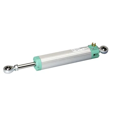 PC series slide movement sensors. Self-aligning linear position sensors with cylindrical housing. Two spherical ball joints ensure mounting and mechanical drive. Angular movement up to ±30 ° maximum. No variation of electrical output signal outside theoretical electrical stroke. Connector outputs type DIN 43650 - ISO 4400 4pins.