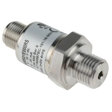 High-performance pressure sensor with stainless steel parts, ideal for compact installations.