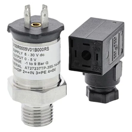 High-performance pressure sensor with stainless steel parts, ideal for compact installations.