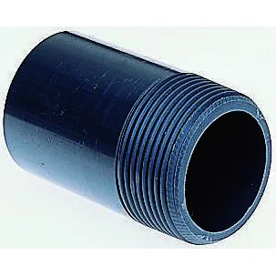 Nipples. Adaptor nipple PVC-U ideally used in the water treatment, shipbuilding and chemical process industries. Thread BSP taper male to plain spigot Maximum working pressure 9 bar at 20°C