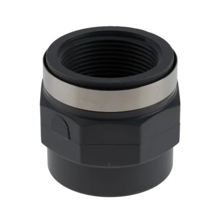 Plain Socket. Ideally used in the water treatment, shipbuilding and chemical process industries. Thread BSP parallel female, reinforced with cadmium plated metal band to plain socket. (The cadmium band end is threaded, the other end is plain)