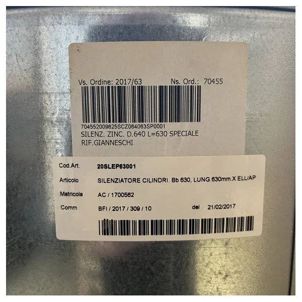 The Gianneschi 20SLEP63001 zinc silencer is a high-quality silencer, specially designed for use with blowers. With its robust construction and effective sound reduction, this silencer creates a quieter and more pleasant environment while simultaneously protecting your blower installation.