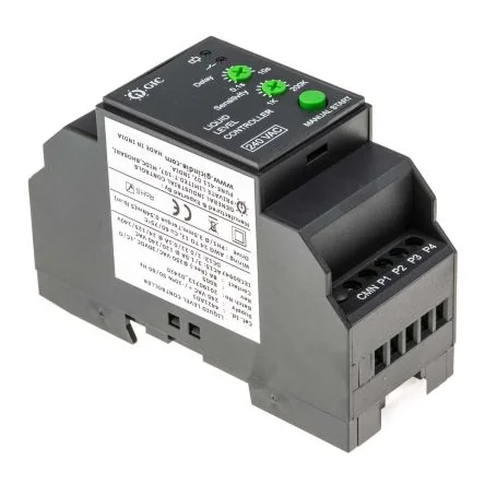 GIC Level ControllersThe GIC 44 series liquid level controller is used to detect the liquid level in a tank where liquids are electrically conducting and device controls the relay output. It has a 240VAC supply voltage and +/-20% accuracy. The mode of operation can be filling and draining, filling only one tank with dual-level monitoring, filling only one tank with single-level monitoring, draining only one tank with dual-level monitoring and draining only one tank with single-level monitoring.Features and BenefitsAdjustable reaction timer from 0.1 second to 10 seconds Fully automatic operation enabling both draining and filling at the same time with a single device Protects submersible pumps against dry running and prevents overfilling Enables maximum utilization of incoming liquid supply Specially designed corrosion and shock-resistant sensors to ensure problem free operation Includes provision for manual start adjustable sensitivity level between 1kohm and 200kohm Power consumption is 3VA 2m enclosure with Din rail mount Adjustable sensitivity of liquid between 1kohm and 200kohmCertificationsCE certified IEC 61000-3-2 IEC 61000-4-2 IEC 61000-4-3 IEC 61000-4-4 IEC 61000-4-5 IEC 61000-4-6 IEC 61000-4-11 CISPR 14-1 IEC 60947-5-1 IEC 61010-1 UL 508 listed IP20 ratedCompatible Sensors• This Level Controller can be used with a GIC level sensor such as (182-8937) 182-8937