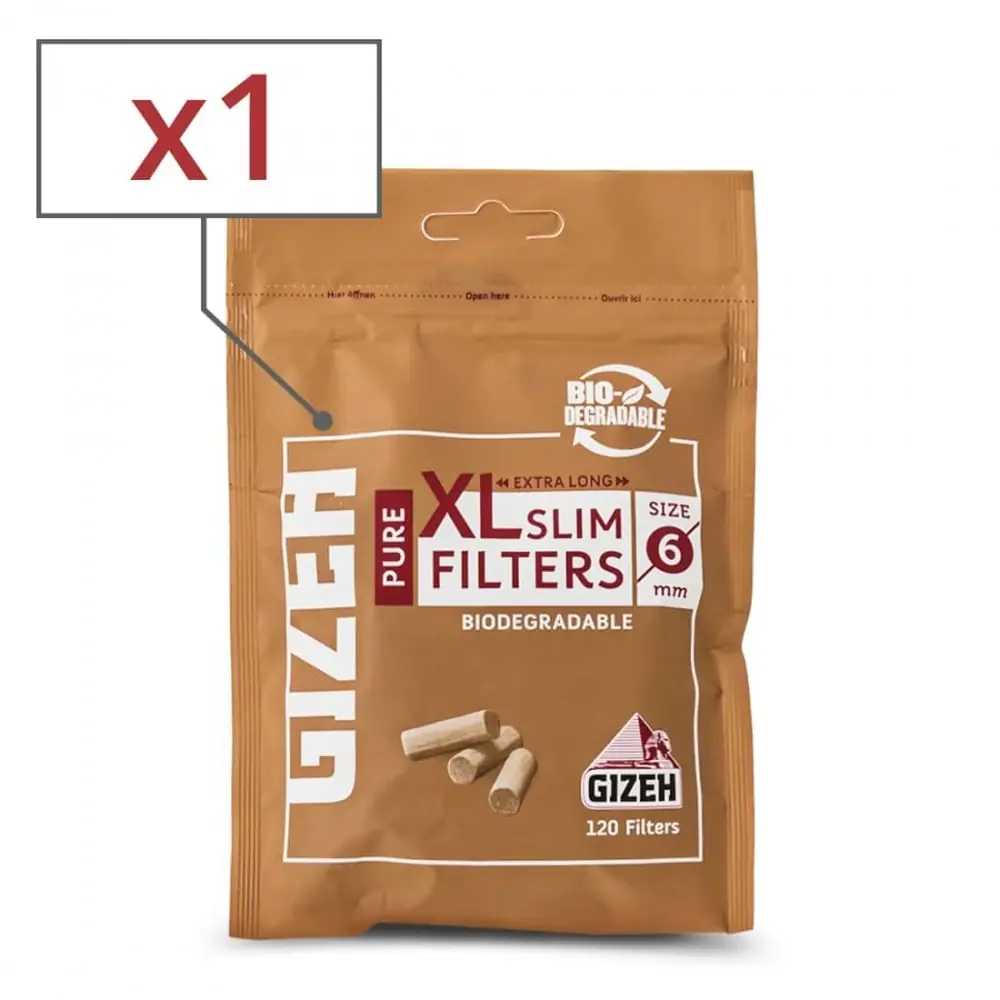 Enjoy a smooth smoking experience with Gizeh Pure XL Slim Filters, featuring 120 filters in a convenient resealable package.