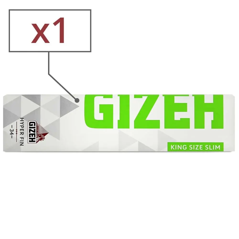 the gizeh brand presents its super thin paper in a long version. only 12g per m2 this watermarked paper is one of the finest on the market. its innovative magnetic closure system is very practical. . finally a packet of foil that closes properly! 1 booklet of 33 gizeh slim hyper fin rolling papers.