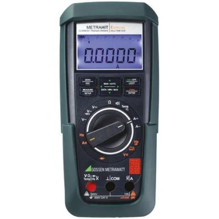 CAT II 600 V. Multimeter, HC20 hardshell case, KS17-2 measuring cable set, rubber holster, batteries (2 x AA), instructions, DKD calibration certificate. METRAHIT / ESPECIAL. Special device for measurements on transformer circuits 21 multimeter functions Effective value measurement (AC, AC+DC) Automatic reading range selection dB measurement function Temperature measurement with TE type J, K MIN / MAX / data hold storage Diode test and continuity test Infrared interface for data transmission (only in conjunction with IR USB adapter and METRAwin10 software) Automatic jack disable (ABS) - prevents incorrect connection of measuring leads One single jack prevents current ranges being interchanged. Optional accessories. Interface adapter (stock no.: ; 606-3776 606-3776 ) METRAwin 10 software (stock no.: ; 292-1331 292-1331 )