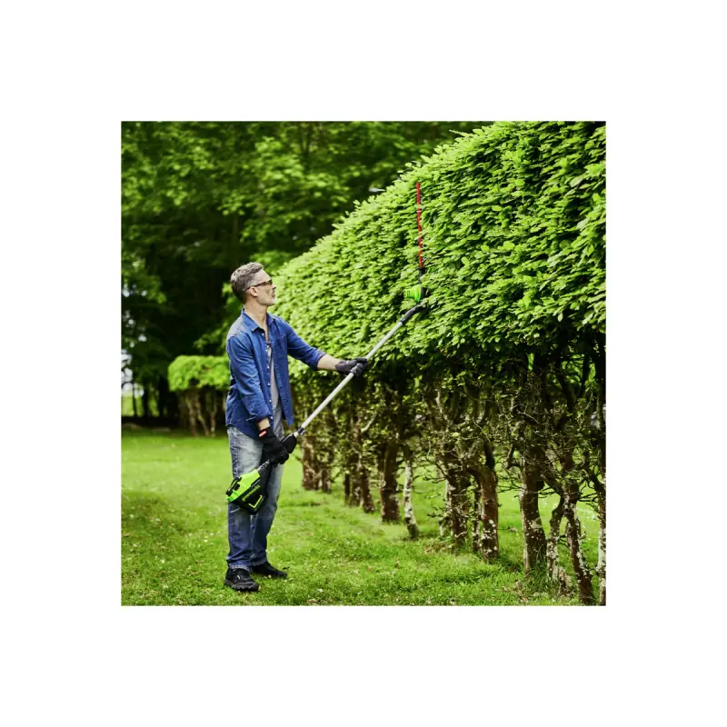 The 60V power supply offers remarkable cutting power, allowing you to tackle even the toughest branches. Additionally, the lithium-ion battery ensures extended autonomy, preventing frequent interruptions to recharge your tool. The lightweight and balanced design of this hedge trimmer makes it a pleasant gardening companion to use, even during prolonged sessions. This hedge trimmer is also designed with a protection system that preserves the blade and reduces the risk of injuries. Its intuitive and ergonomic use facilitates handling, making each cut more enjoyable and less tiring. By choosing this pole hedge trimmer, you are investing in a reliable and efficient tool that will save you time and energy in maintaining your garden. For a demonstration of its capabilities, you can watch the video available on our website.