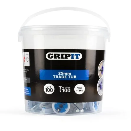 Gripit Blue Plastic, Steel Plasterboard Fixings, 25mm fixing hole diameter - GP25100