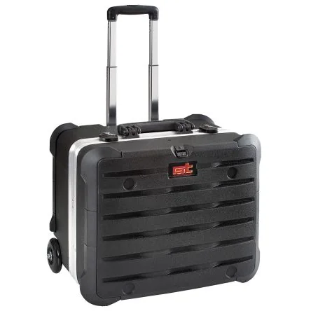 GT Line Tool CaseThe GT Line ROCK TURTLE PEL is a polyethene, reinforced tool case made from HDPE resin with extra thick aluminium trim for tight closure. This is a comprehensive case supplied with trolley and wheels. The high capacity case is suitable for air travelling engineers that carry both tools, spare parts and components. The case is resistant against high and low temperature, chemical corrosion, shock, and airport handling.Features and BenefitsLength of 470mm, width of 320mm and has a depth of 390mm One lid tool pallet with elastics on both sides and a practical large pocket with closing flap One bottom compartment pallet with elastics on one side One Document wallet 3 small compartment boxes 2 handles with ergonomically designed grip and excessive load capacity 2 metal TSA locks with keys Large base area for tools, power tools, accessories and spare parts Steel piano hinge riveted in several points Telescopic handle and large wheels provided with ball bearings for easy transportationApplicationsIndustrial Automotive Technicians