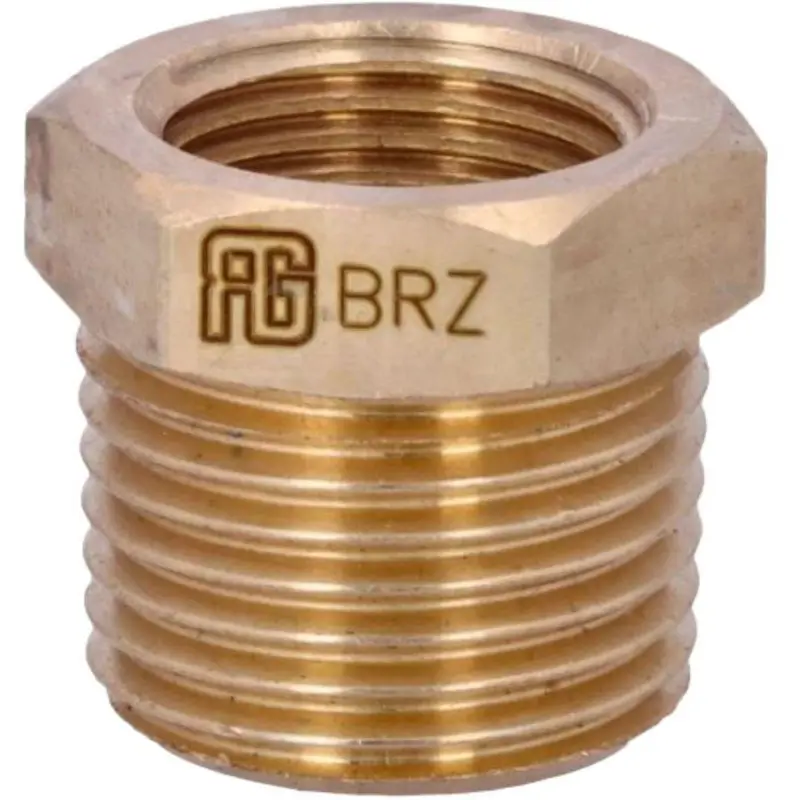 Brass reduction fitting for male-female connections, ideal for plumbing applications.