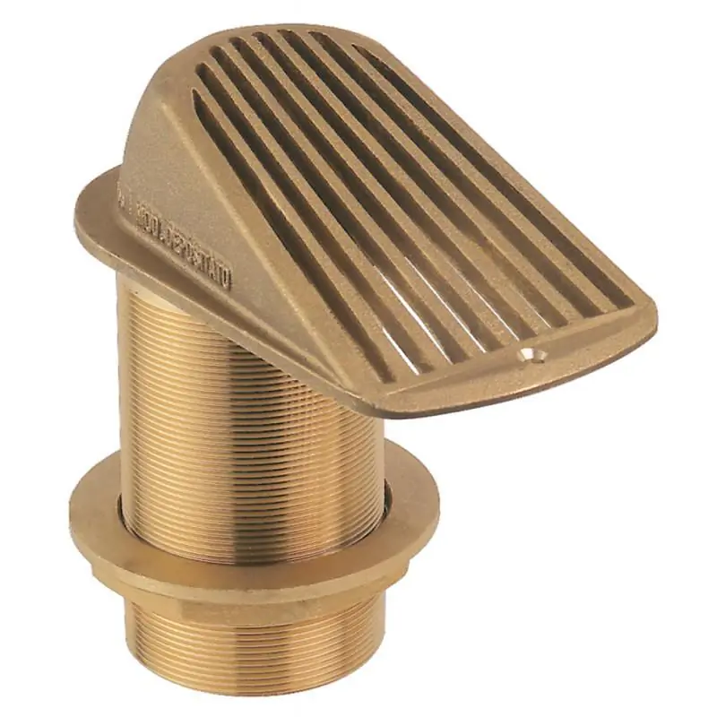 Durable brass skin fitting with strainer, perfect for above waterline marine installations.